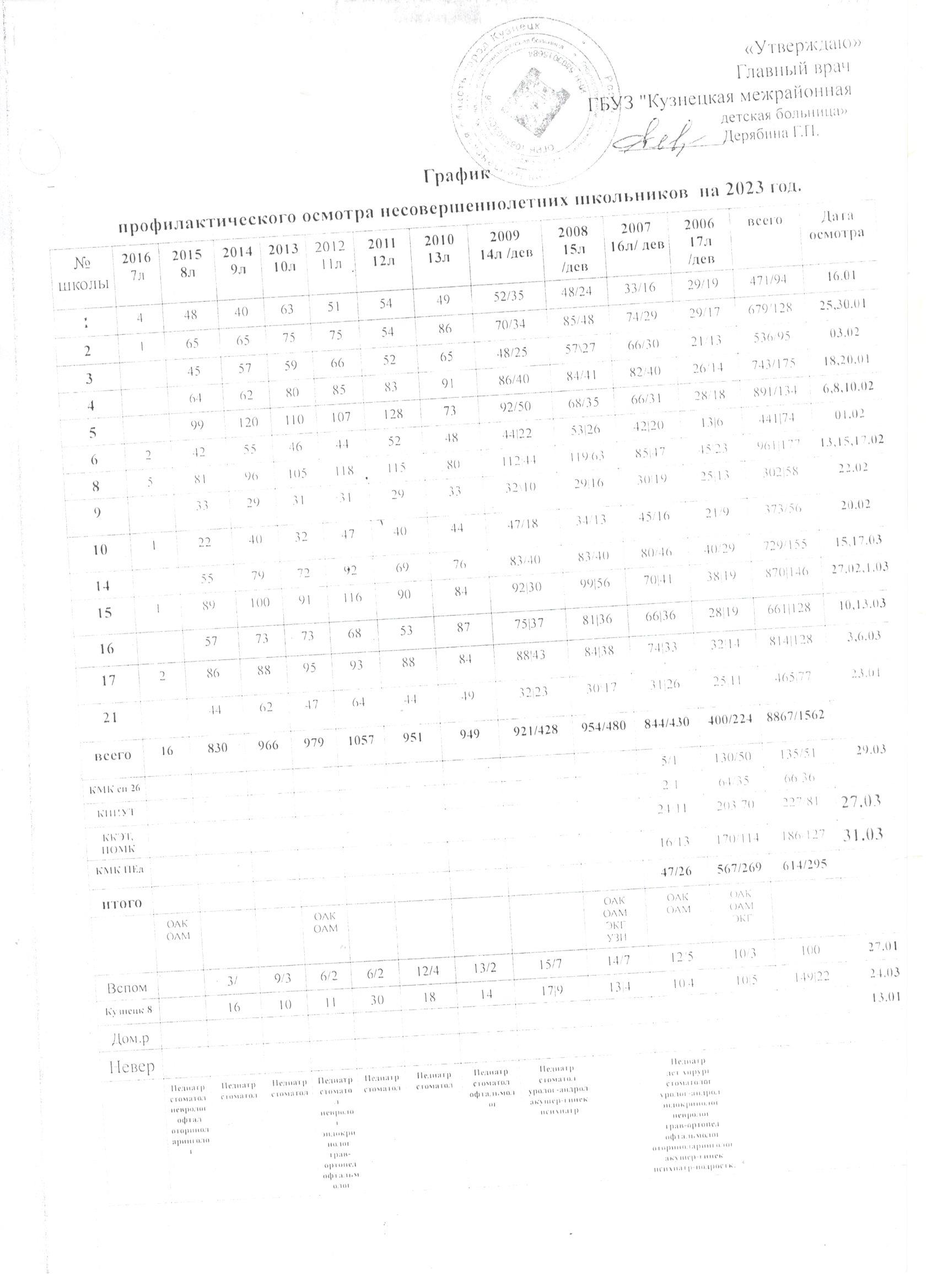 - График профилактических осмотров несовершеннолетних по Кузнецкому району в 2023 году