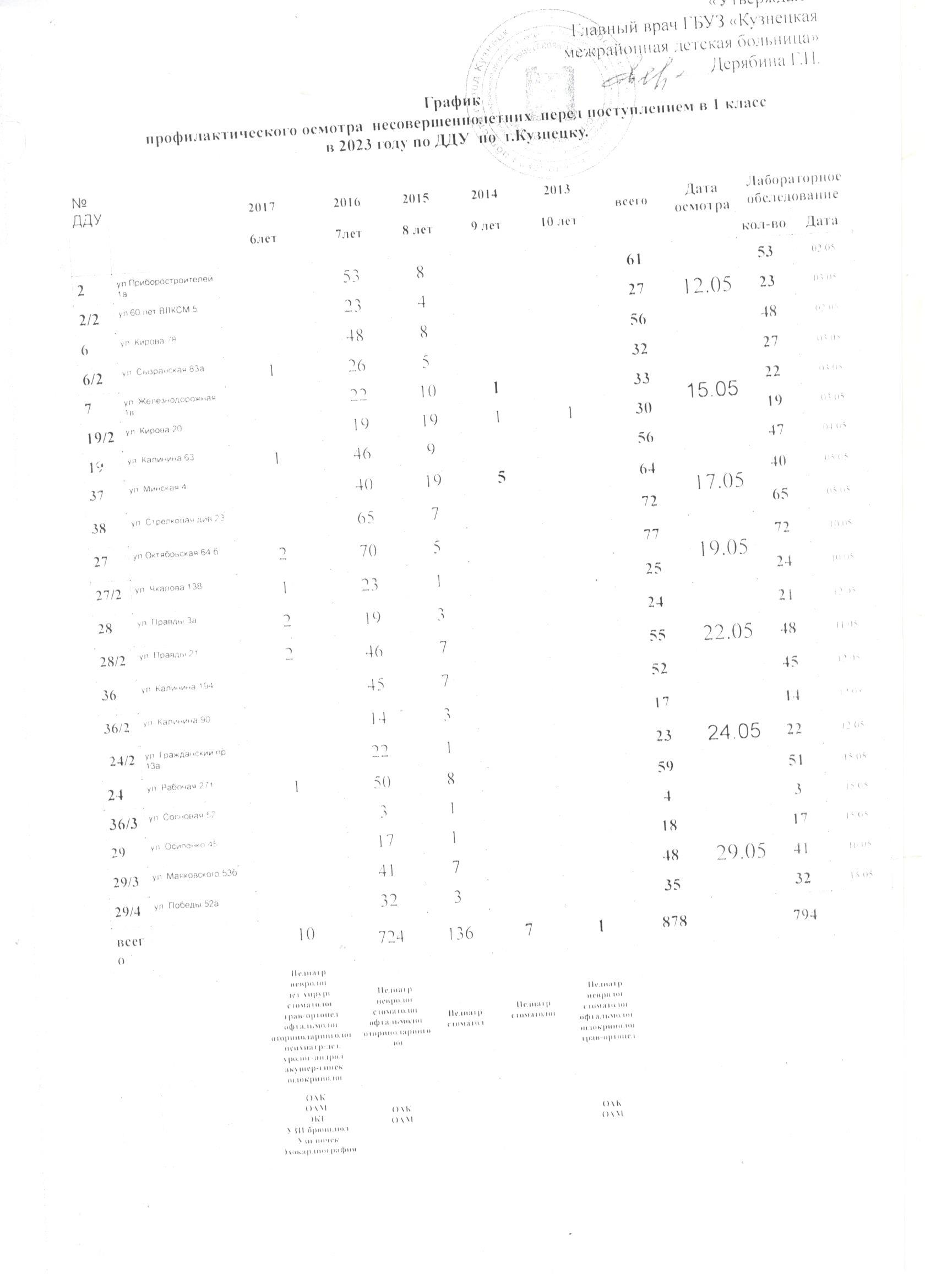 - График профилактических осмотров несовершеннолетних в детских дошкольных учреждениях Кузнецкого района в 2026 году [Скачать оригинал]